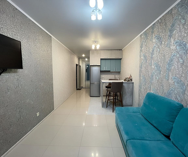 Квартира студия с евро ремонтом. Вся техника и мебель имеется. Развитая инфраструктура, магазины, школа и т.д. |