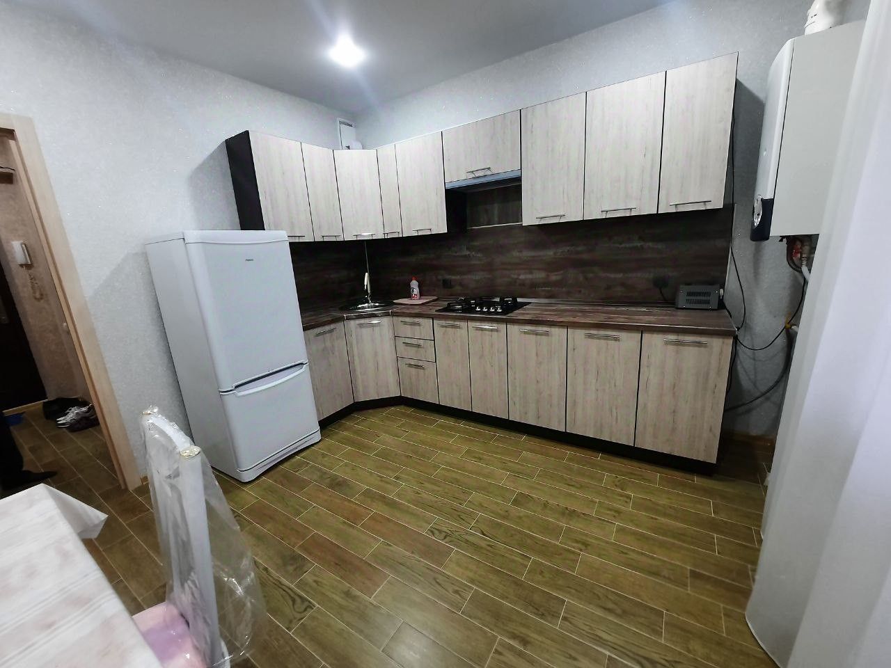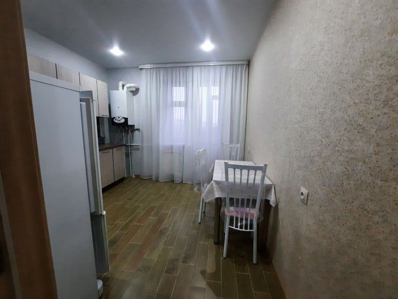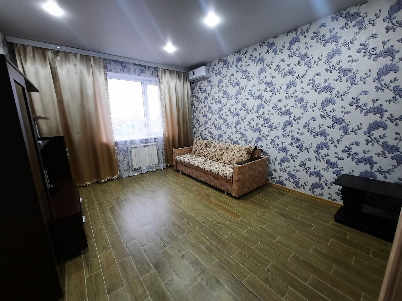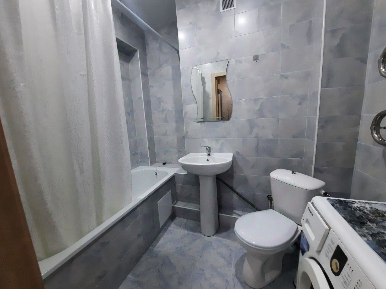 В квартире сделан косметический ремонт (в квартире еще никто не жил),новая мебель,индивидуальное отопление.Платежи намного ниже чем в квартире с центральным отоплением. Она полностью меблирована: в комнате и на кухне есть всё необходимое для комфортной жизни. Оснащена техникой, включая кондиционер, холодильник, телевизор и стиральную машину. Ванная комната оборудована ванной.