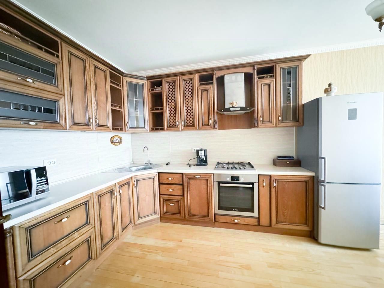 Техника: газовая плита, духовой шкаф, микроволновая печь, кофеварка, стиральная машинка.