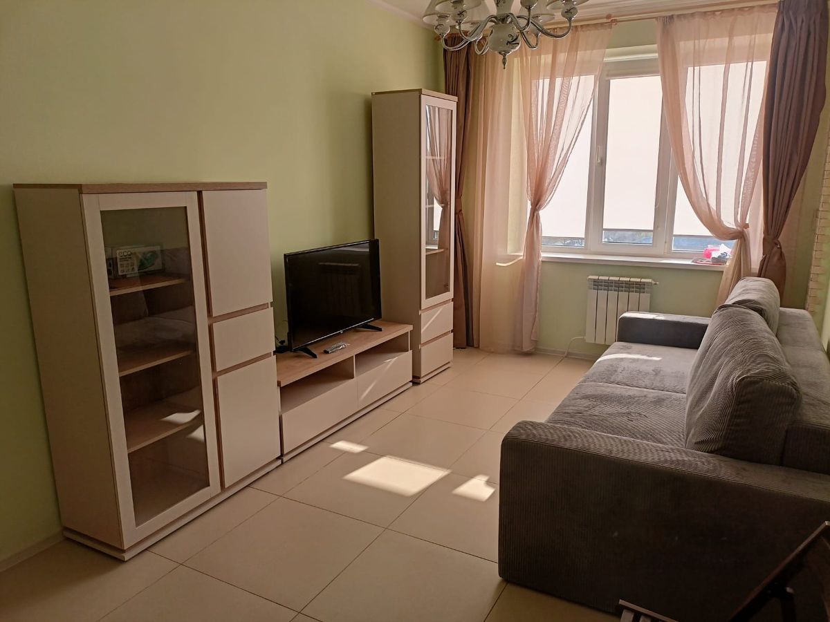 В Квартире установлен кондиционер, новая мебель, двуспальный диван (1.5м*2м, еврокнижка с ортопедическим основанием), телевизор, стиральная машина, гладильная доска, сушилка для белья, утюг; полностью оборудованная кухня: большой холодильник, индукционная плита (в доме нет газа), духовой шкаф, микроволновая печь, электрический чайник, минимум посуды и приборов для приготовления и употребления пищи. Банные принадлежности (одноразово): мыло, гель для душа, шампунь, тапочки.
