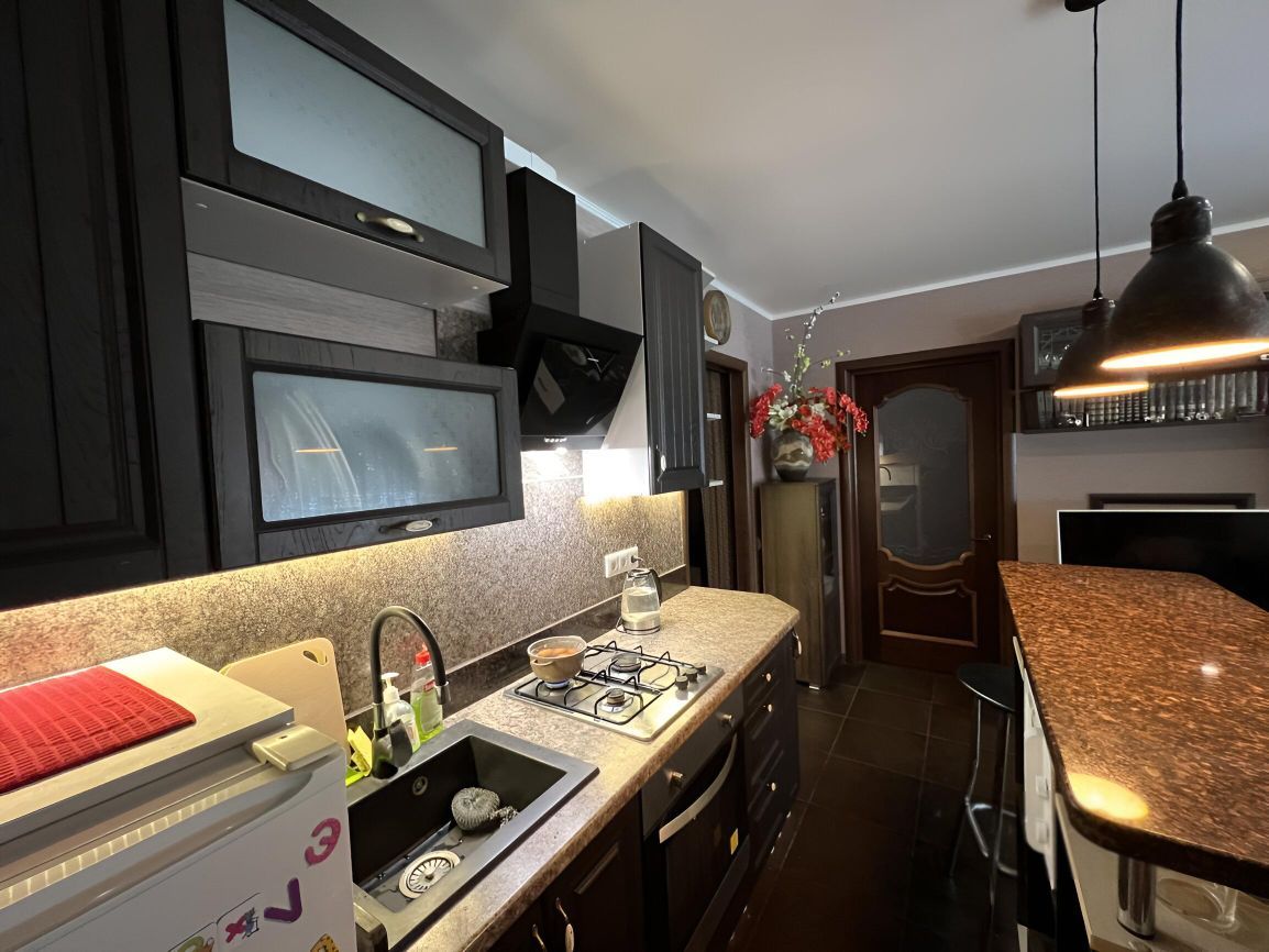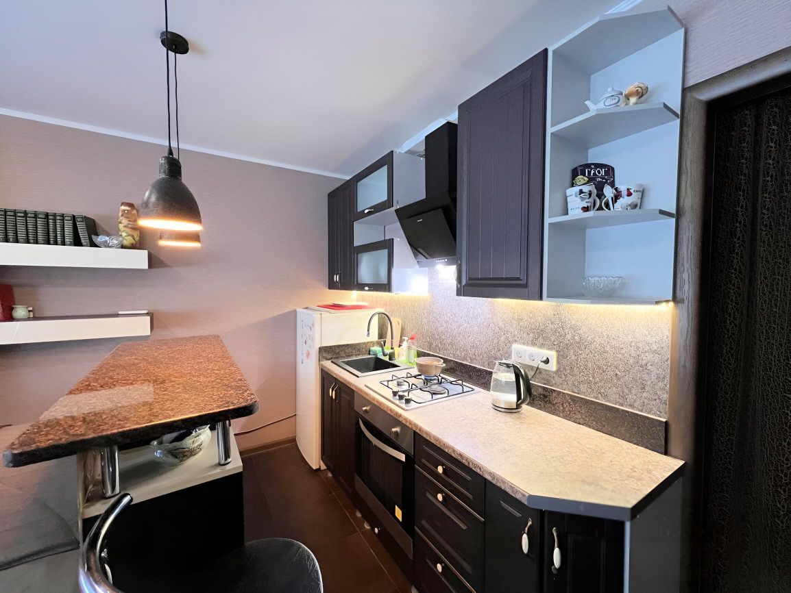 * Гостиная-кухня: раздвижной диван (2 спальных места), стол, 3 стула, кресло, барная стойка, два барных стула, тв-тумба.