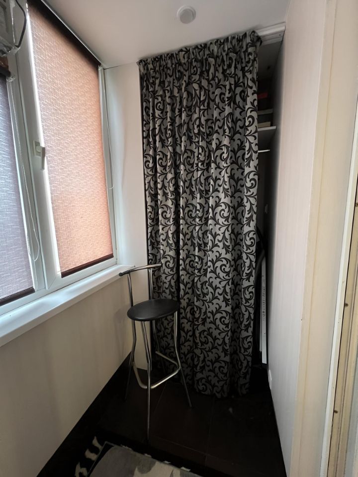 * Спальня: двуспальная кровать, две тумбы, комоды для хранения и рейл, балкон с теплым полом и местом для хранения, также на балконе есть рабочая зона с письменным столом.