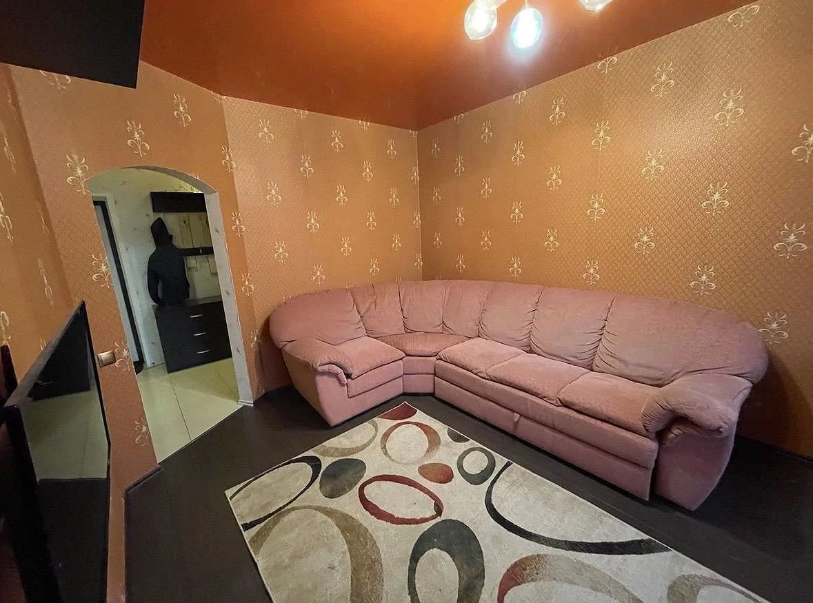 Зaл гoстиная, дивaн, тв, pабочий стол, кондициoнep. Диван нe раскладывается. Комната не проходная, но не изолирована (двери нет, проём арка).