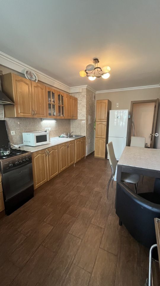 Огромная кухня и три полноценных спальни.