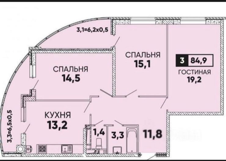 | Площадь общая/жилая/кухня | 85 / 60 / 15 |