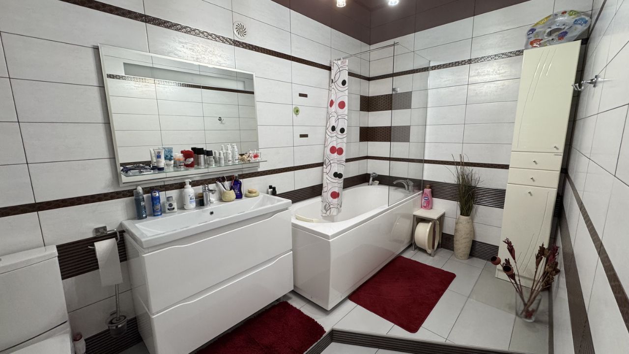 В квартире сделан качественный евроремонт. В комнатах и на кухне есть вся необходимая мебель, а также современная техника: кондиционер, холодильник, телевизор ,стиральная машина, микроволновка. Санузел совмещённый, с ванной, что добавляет удобства. В квартире есть лоджия.