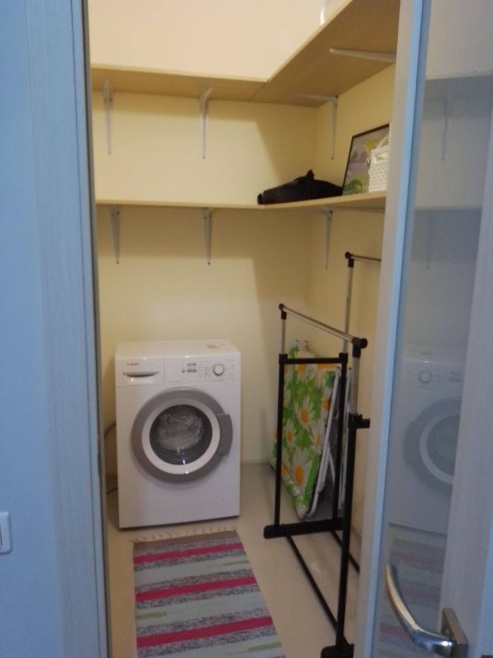 В квартире есть все необходимое для комфортного проживания. Просторная кухня оборудована мебелью и техникой: холодильник и кондиционер обеспечат приятный микроклимат, а стиральная машина сделает быт удобнее. В комнате также имеется мебель, а окна выходят во двор, что обеспечит тишину и покой. В ванной комнате установлена ванна для вашего удовольствия.