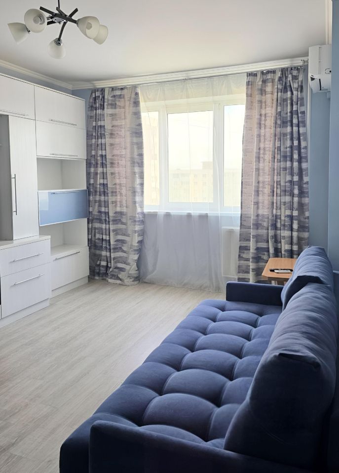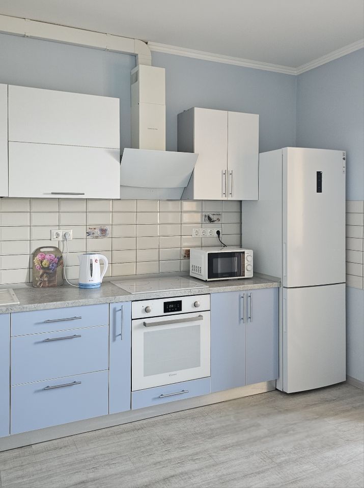 В квартире сделан евроремонт, установлена современная мебель и техника. На кухне есть всё необходимое для комфортного приготовления пищи, включая холодильник, микроволновую печь, вытяжку, электрические варочную панель и духовой шкаф. В комнате — удобная мебель: новый диван, журнальный столик, мебельная стенка по индивидуальному проекту с электрическим камином и телевизор для вашего отдыха. В ванной комнате установлена ванна, а также есть стиральная машина. В прихожей - настенная вешалка, обувница, встроенный шкаф-купе. Для поддержания комфортной температуры в любое время года предусмотрены кондиционеры в комнате и на кухне. Уютная лоджия позволяет наслаждаться свежим воздухом, не выходя из квартиры. На лоджии установлен электрический пол.