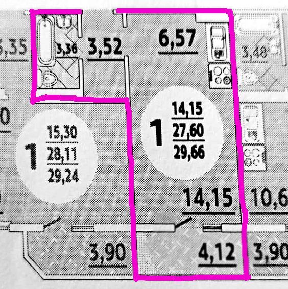 | Площадь общая/жилая/кухня | 29 / 14 / 6,5 |